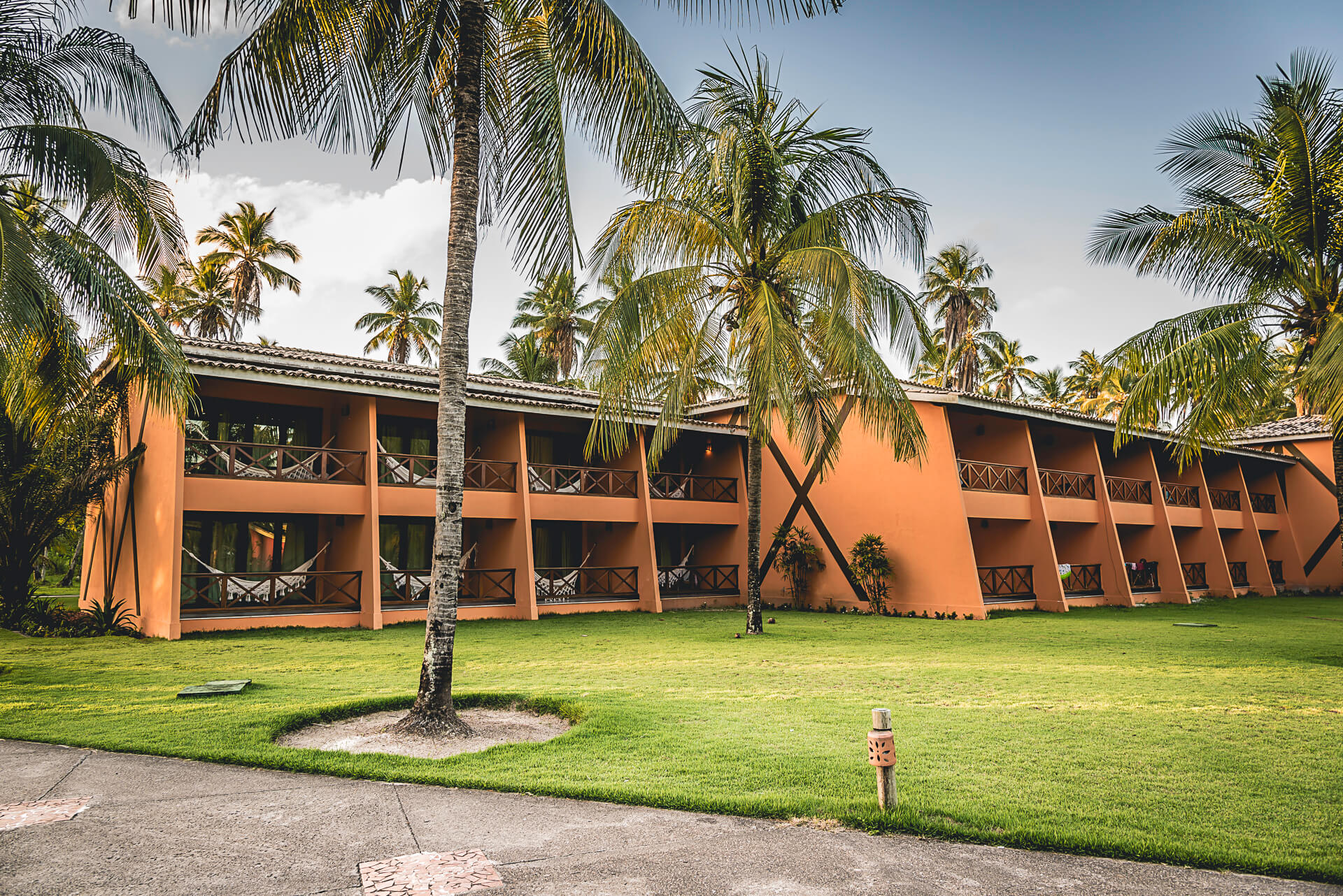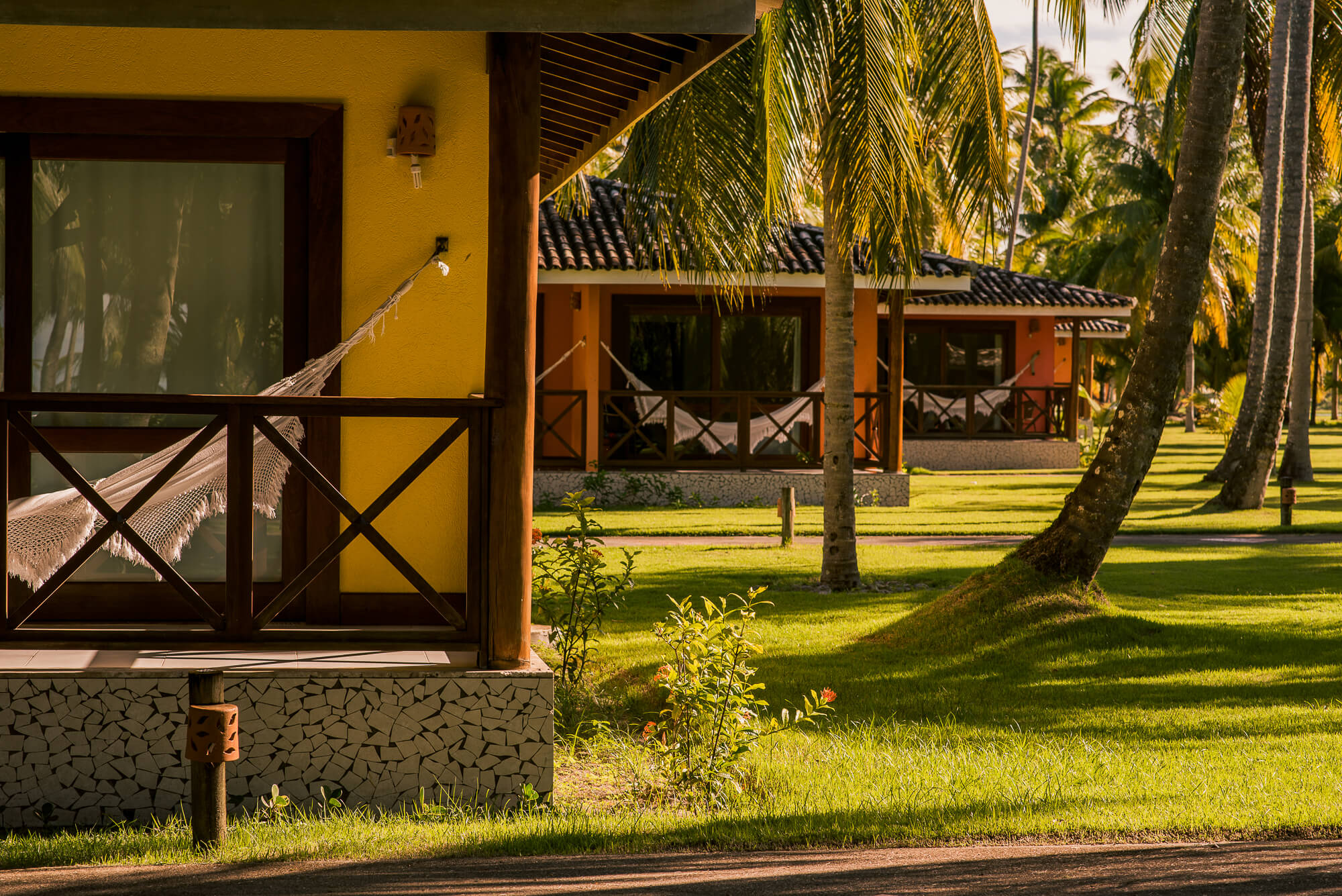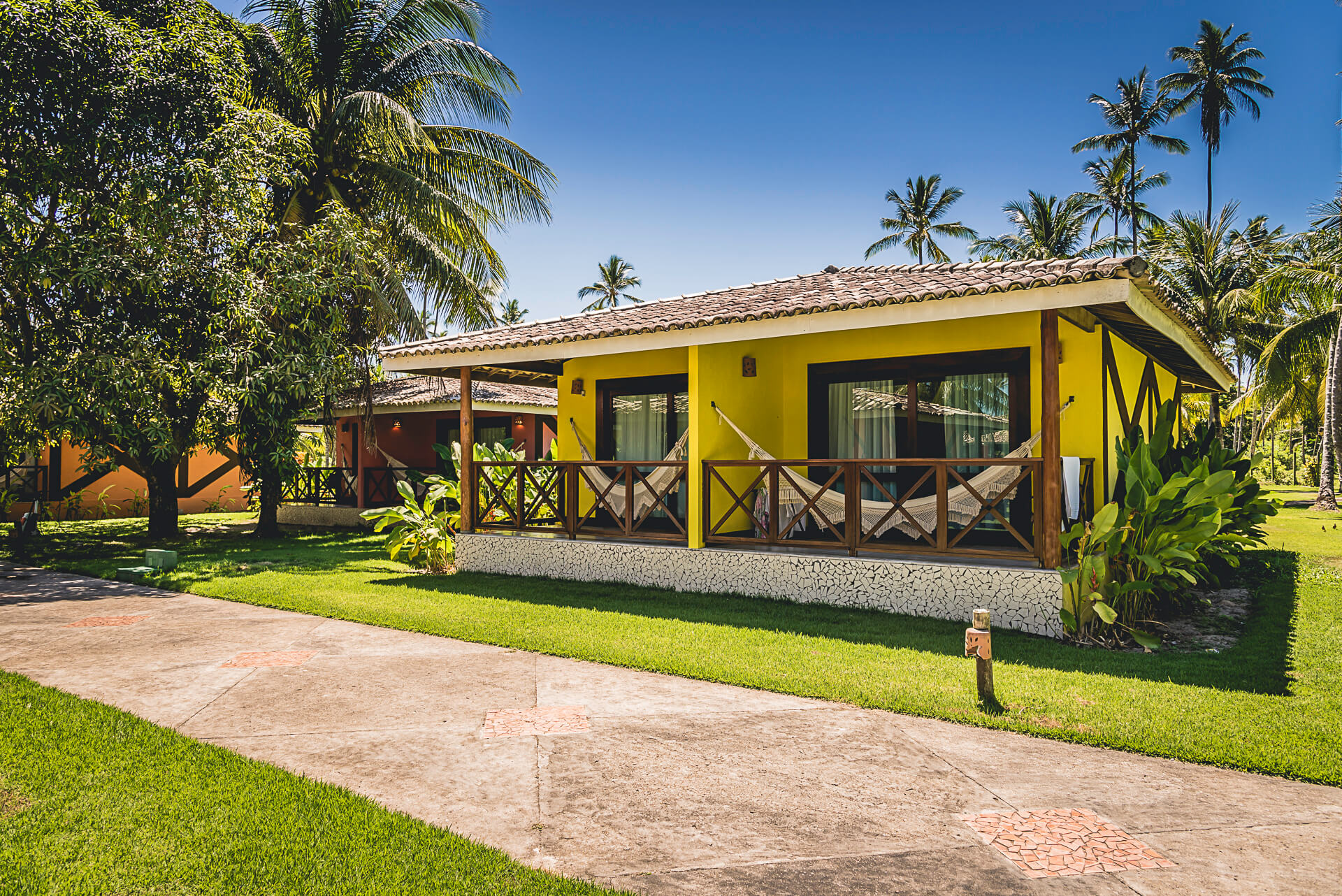 Os Bangalôs Luxo são a combinação perfeita de charme e conforto. Cercados por uma vasta área verde e muitos coqueiros, estão localizados na área central do hotel. São 40 apartamentos, cada um com 40m² de área, todos com uma ampla varanda com rede, ideal para relaxar e apreciar o jardim. Os banheiros são equipados com chuveiro elétrico, secador de cabelos e uma linha completa de amenities, incluindo produtos infantis.